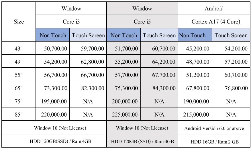 จำหน่าย ตู้คีออส Digital Signage Kiosk 43, 49, 55 นิ้ว