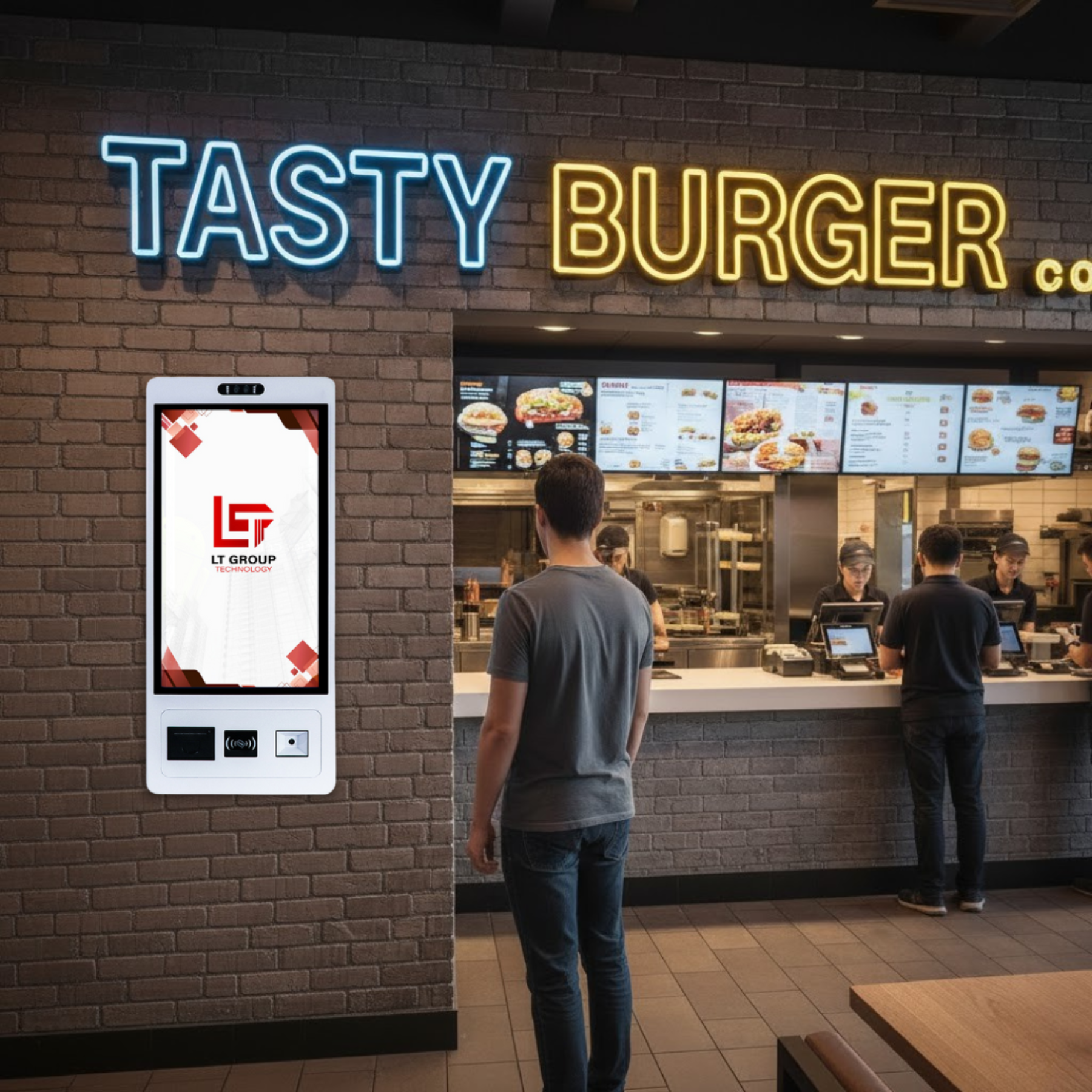 ตู้บริการสั่งอาหารด้วยตนเอง (Self Ordering Kiosk) มาพร้อมหน้าจอ Touch Screen ขนาด 23.8 นิ้ว หน้าจอแนวตั้ง รองรับการใช้งานทั้ง ระบบปฏิบัติการ Windows และ Android ที่ออกแบบมาให้ใช้งานสะดวกรวดเร็ว ไม่ว่าจะเป็นการเลือกสินค้าและบริการ หรือการชำระเงิน ต่างก็สามารถทำได้ด้วยปลายนิ้วสัมผัสตอบโจทย์ทุกธุรกิจที่ต้องการเพิ่มประสิทธิภาพการให้บริการ เหมาะสำหรับธุรกิจทุกประเภท ห้างร้าน, โรงแรม ร้านและ อาหาร ตู้บริการสั่งอาหารด้วยตนเอง จะช่วยยกระดับประสบการณ์การบริการและสร้างความพึงพอใจให้กับลูกค้า ด้วยการให้บริการที่รวดเร็วและทันสมัย